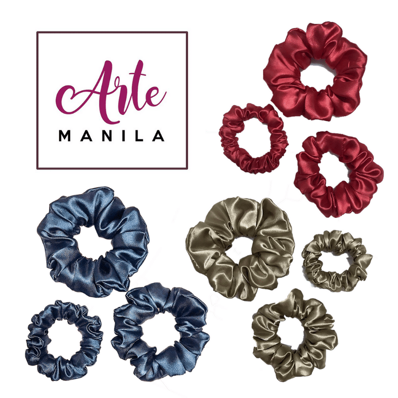 Arte Manila Silk Scrunchies Set of 3 including three different sizes of scrunchies in the same color