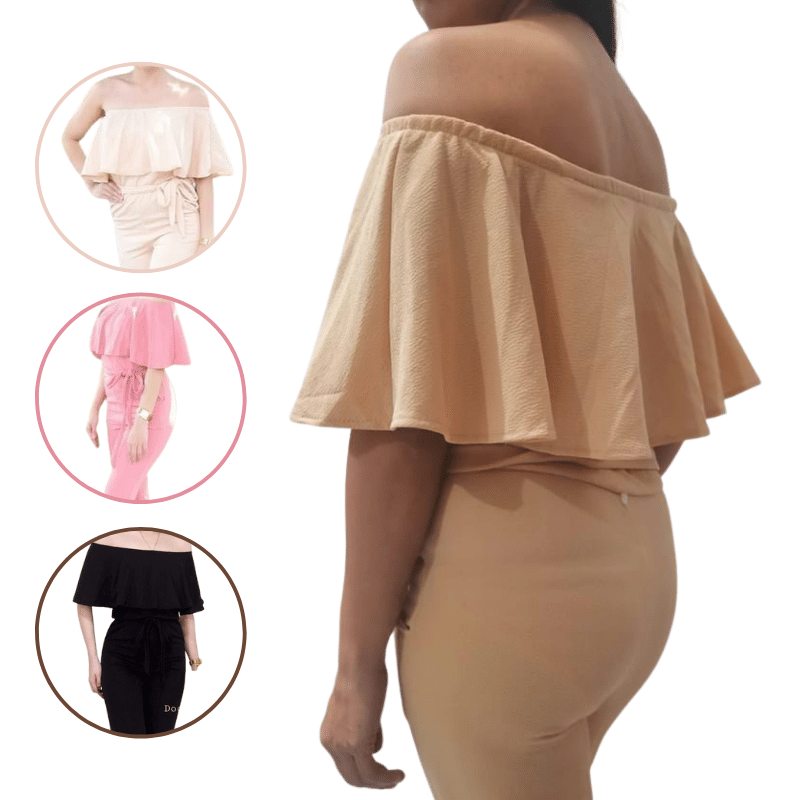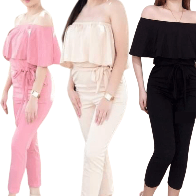 This jumpsuit has a soft and comfortable feel. It can be worn in a number of ways i.e. off-shoulder, off one shoulder, etc - depending on the occasion or mood. It can fit 26 to 32 inches of waist size. It's made from Crepe Fabric. It can be your casual, formal or office attire. Available in rose pink, tan and black.