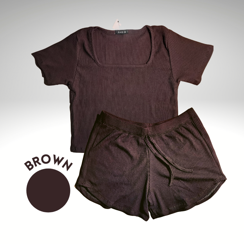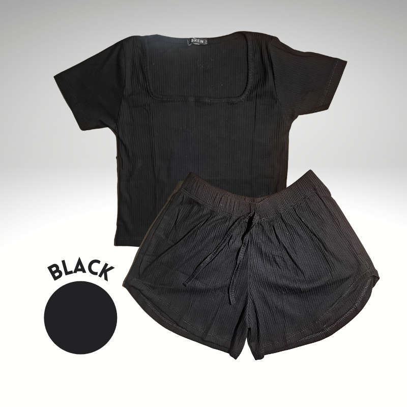 Square Neck Top and Shorts Made of Knitted Fabric Small to Medium Size