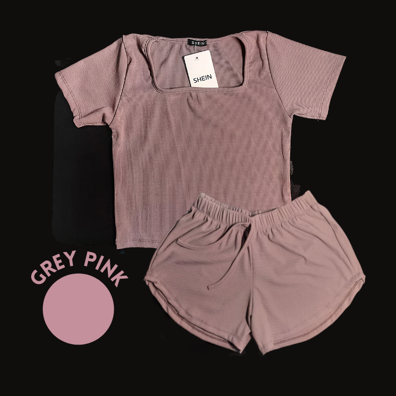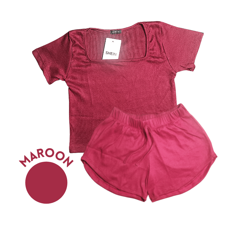 Made of Knitted Fabric. both top and shorts should be comfortable to wear. It's stretchable. The shorts can fit up to 32-inch waistline. Available on hand. And, we accept COD.