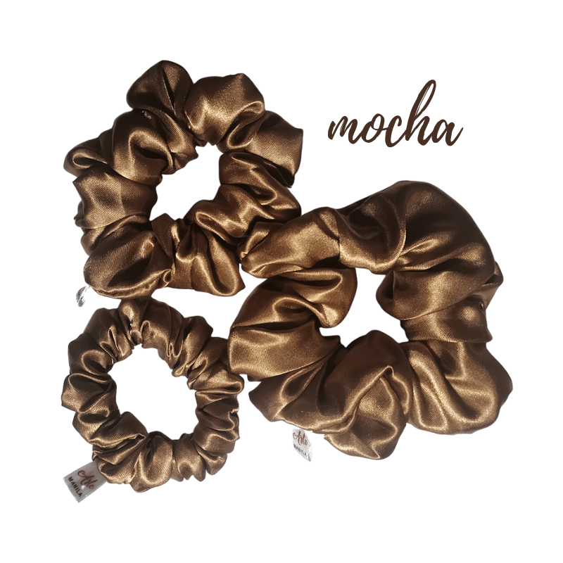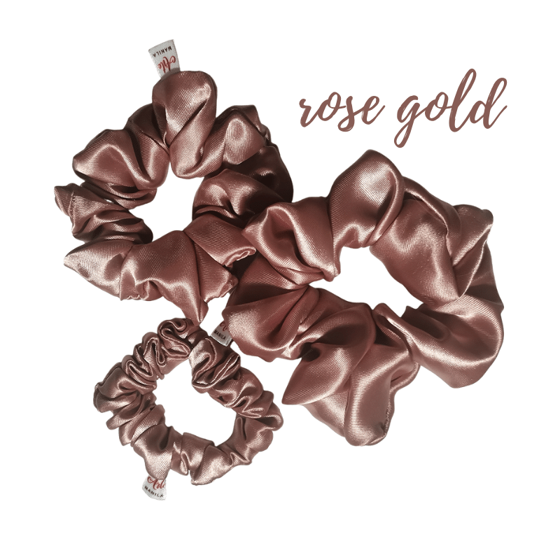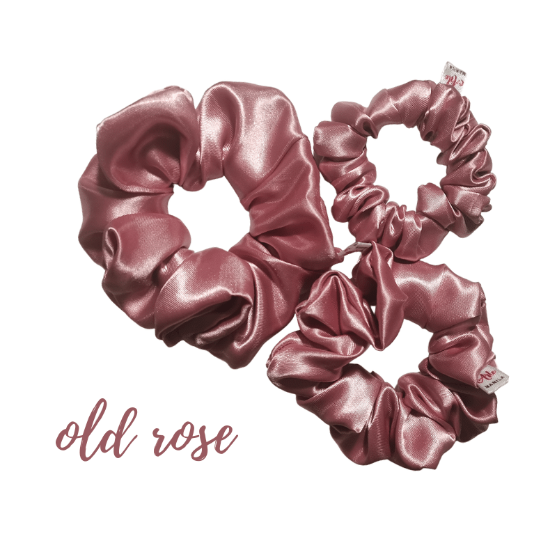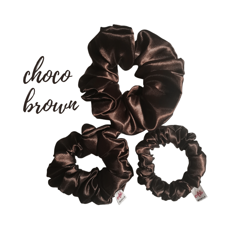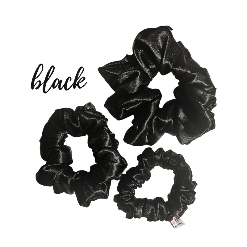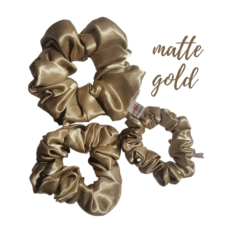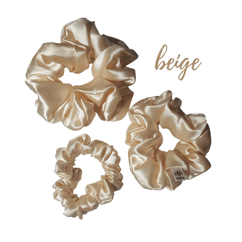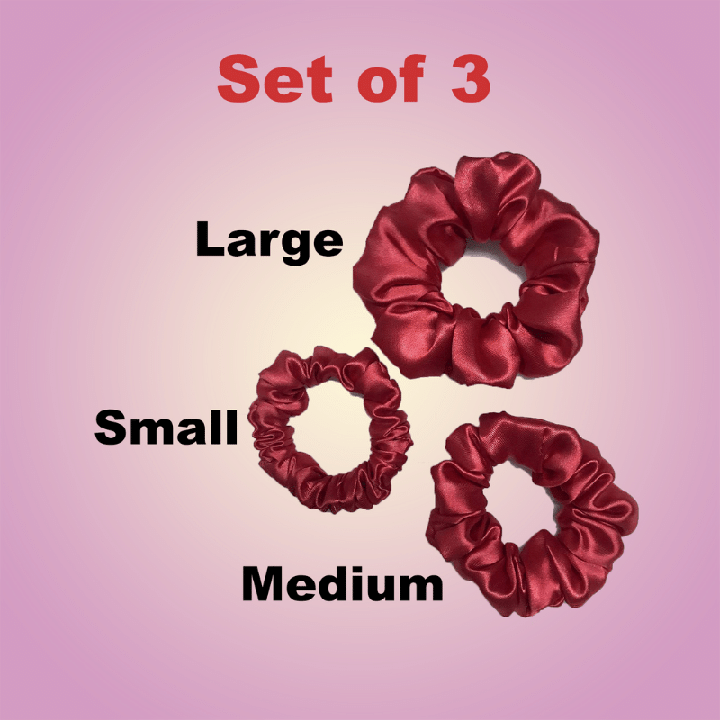 Arte Manila Silk Scrunchies Set of 3 including three different sizes of scrunchies in the same color